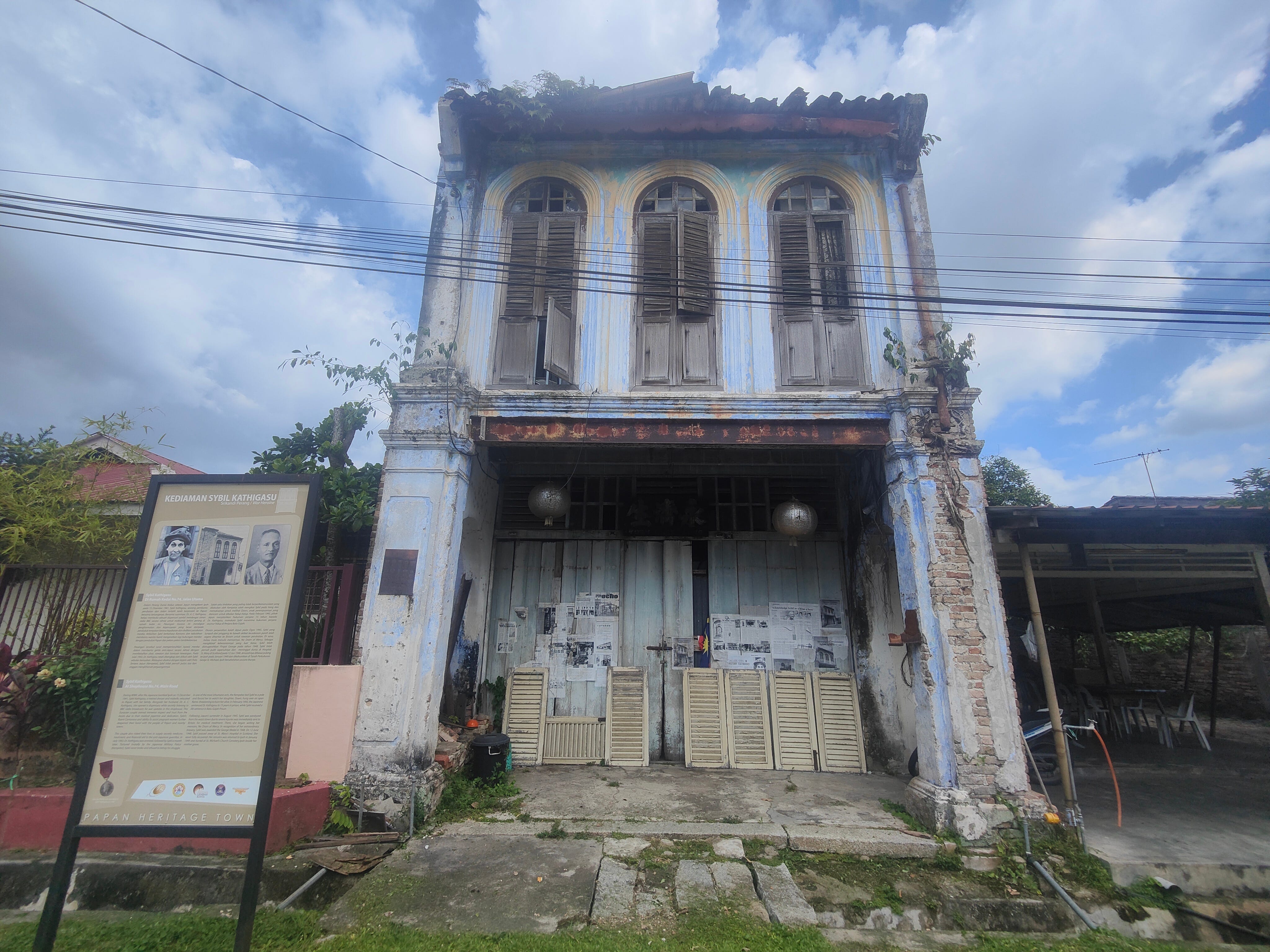 This house had its own poster to talk about the woman who lived here - Sybil Kathigasu. She was an English midwife who came here after the Japanese bombed Ipoh at the end of 1941. She and her husband (a doctor, but she gets the poster) had a dispensary but got into trouble for supplying medicines and aid to the anti-Japanese guerrillas: they were both detained and tortured by the Japanese (they even hung the daughter over an open fire) but they never broke or shared their secrets. When she was finally rescued at the end of the war, Sybil was paralyzed, She received the George Medal and wrote a memoir, No Dram of Mercy.