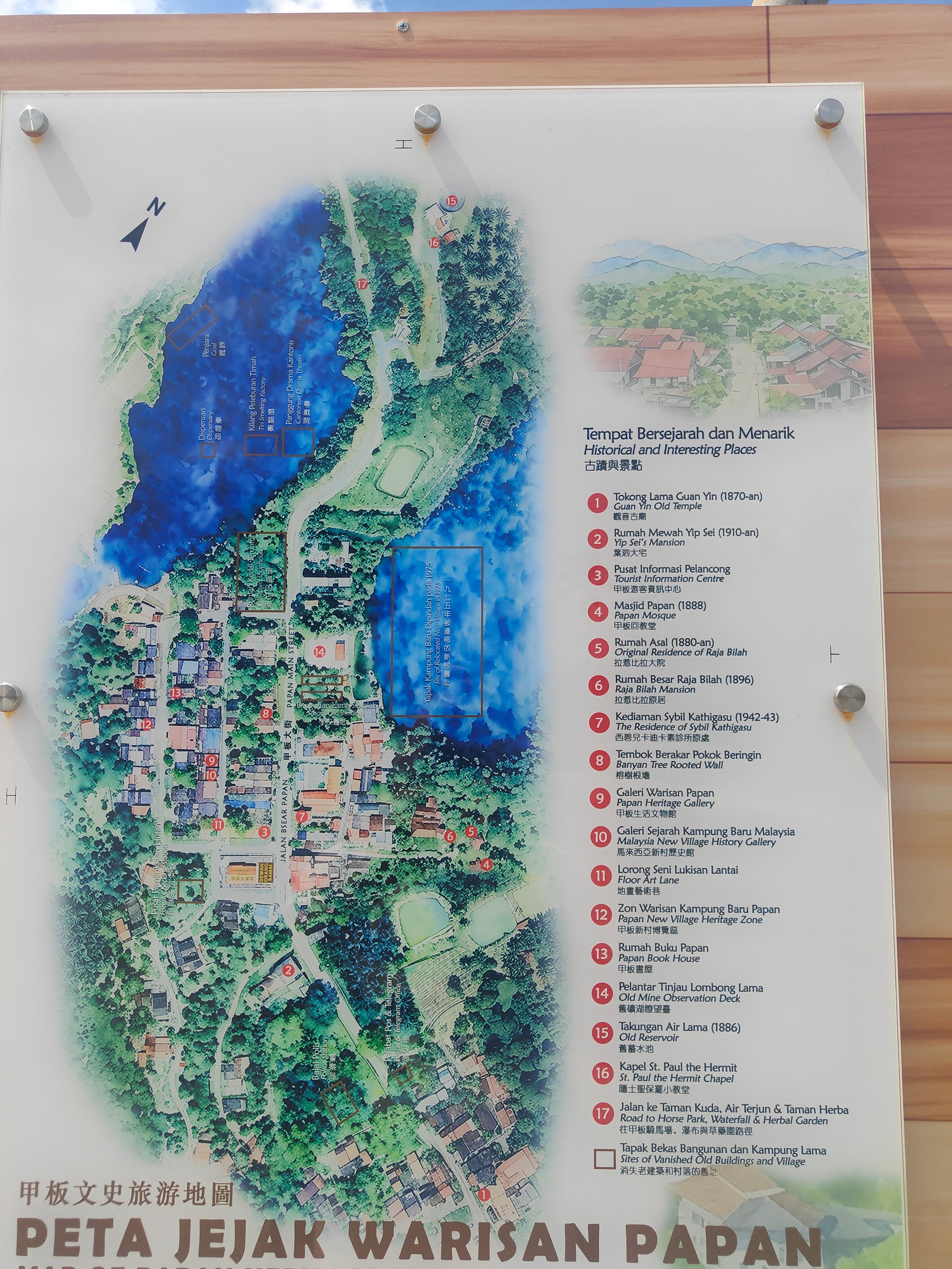 Papan is a 15 minute walk away. It was a mining town - tin - but when the bottom fell out of tin prices in the mid ‘80s, the mine closed and people moved away. There’s also a darker history to the town. The Malayan Emergency was a civil war between the pro-Independence communists (many Chinese) and those supporting the British Empire, running from 1948 to 1960. The British forcibly removed more than 500,000 people, the vast majority were Chinese, into Resettlement Areas: Papan was one of them. People were behind barbed wire fences with armed guards for 8 years, until the local guerrillas were defeated and it was “safe” to take the fences down. I don’t seen any signs of this part of the town’s history.
