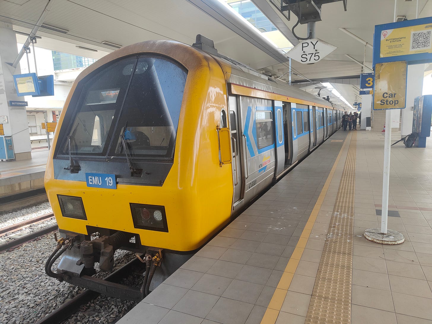 It’s hard, and will be impossible from 1 January, to book the ETS train from Ipoh to Butterworth so I don’t bother. There is a train dedicated to the route - not as fast or comfortable as the ETS but it does the job: the Komuter. Seats can’t be booked and there are not many of them - just a line of them down each wall - so you can find yourself standing: luckily I don’t, but I have taken the precaution of being there early, foregoing a last coffee at ColdBlue to do so.