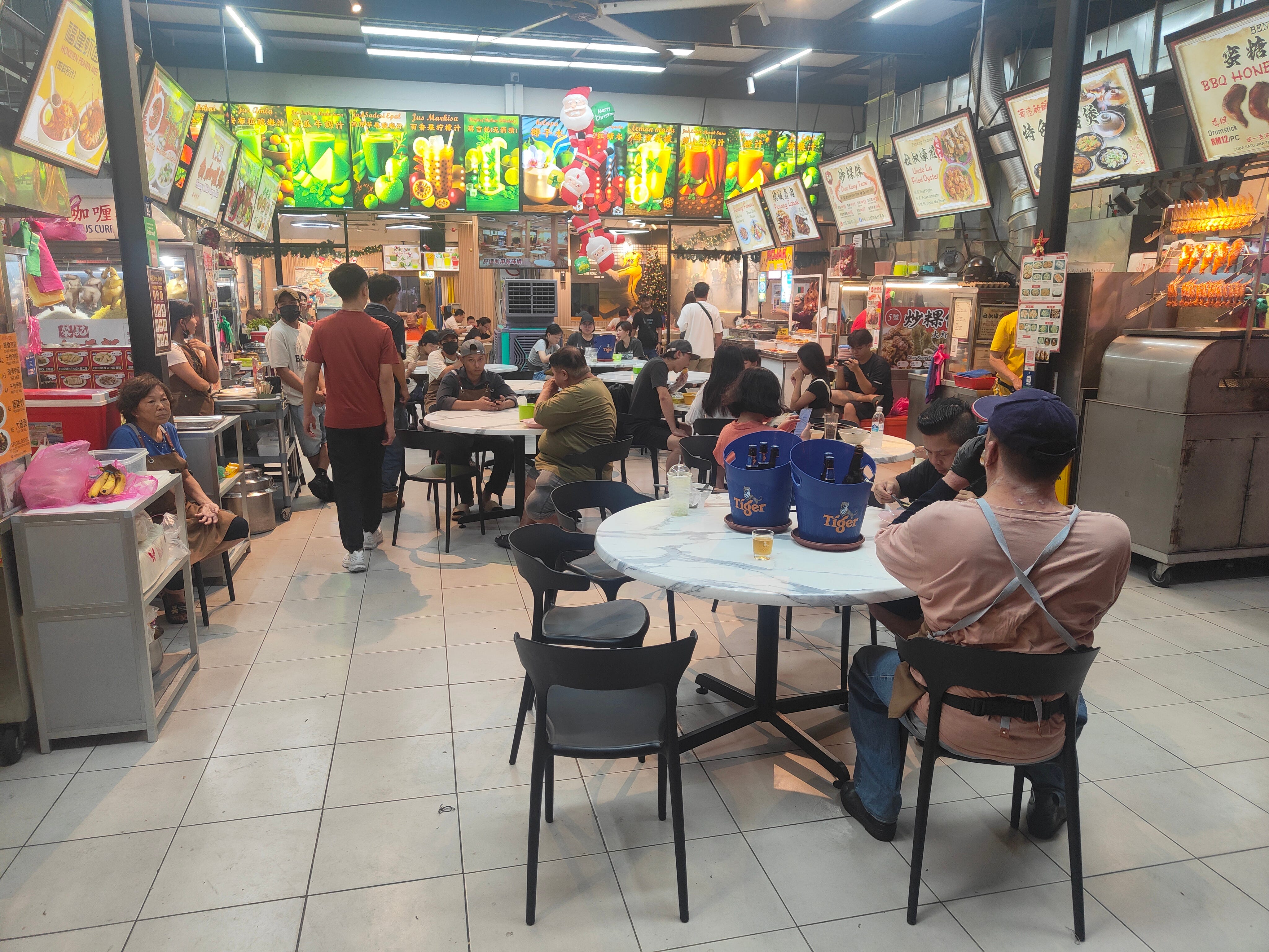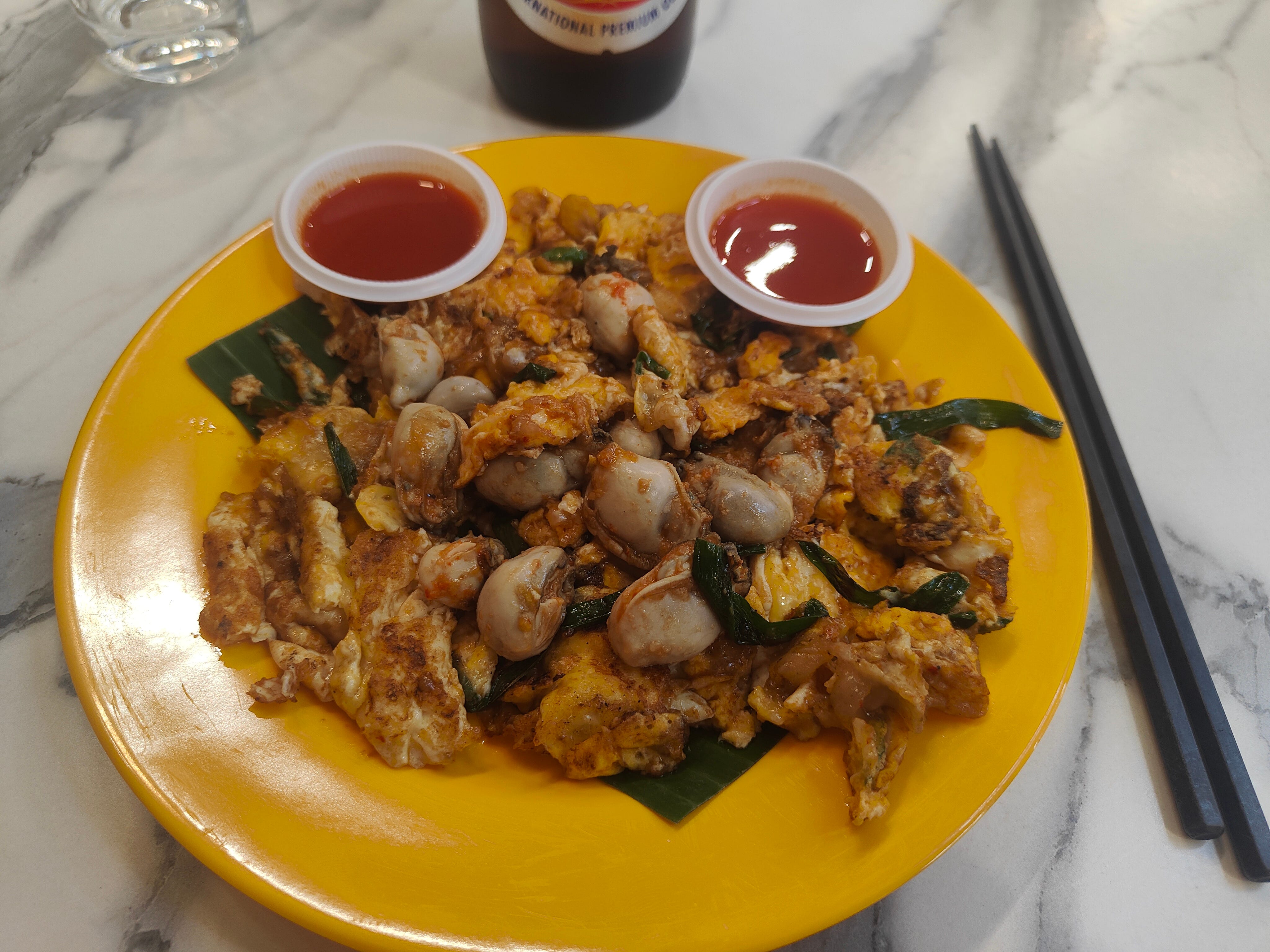 In the evening, I return to the nearby food court - remarkable for having a new, air-conditioned indoor area, behind the foodstalls - for a really good oyster omelette.