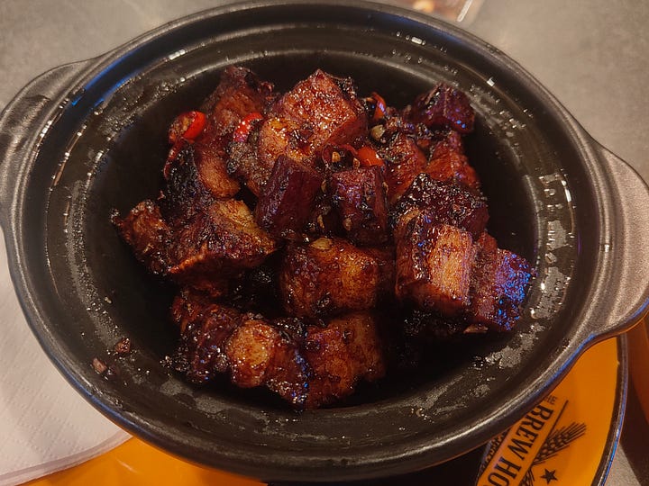 My last evening in Ipoh, I try to have dinner at a wonderful food court I visited last time, but its closed. In it’s place, I go to the pub - the Beer House - which is well regarded for its food. I’m intrigued by the idea of pork belly with peppers and a marmite sauce: I don’t really taste any marmite and the peppers are noticeable by their negligibility - it is just a pile of pork belly, a little dry.