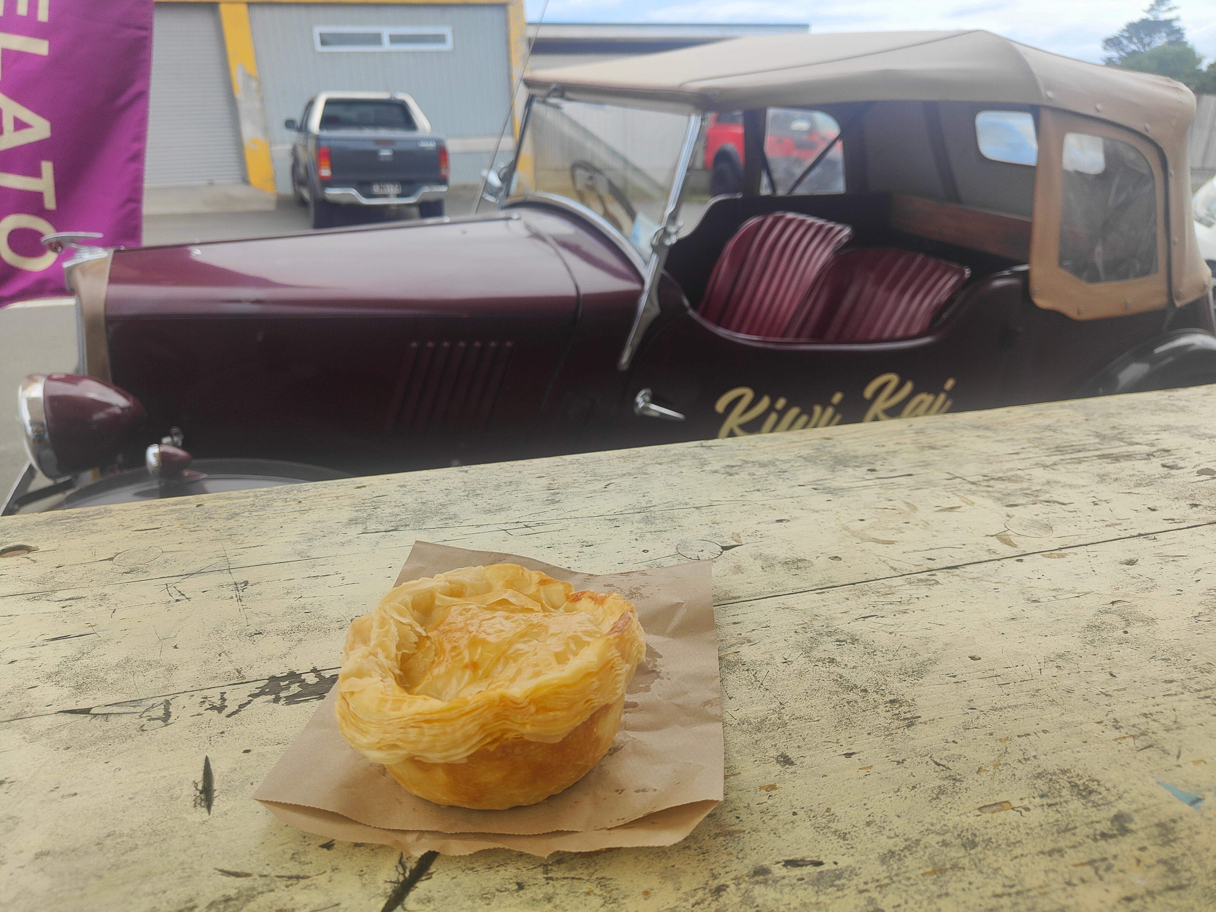 One thing that has been added is a wee coffee shop called Kiwi Kai, in what had been a space beside the foodmarket. They do burgers and the like, along with pretty decent pies - the top seems to be phyllo pastry - it keeps blowing away in the wind as I bite into it.