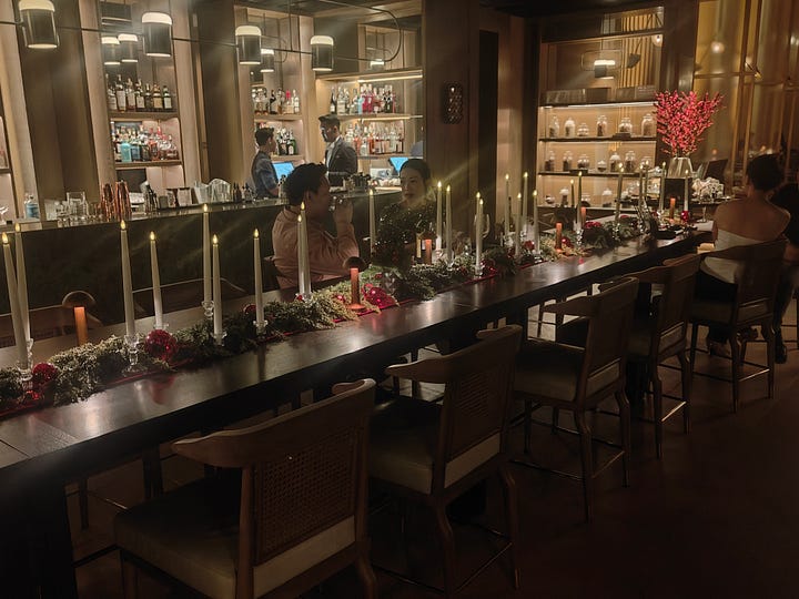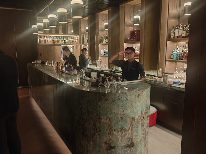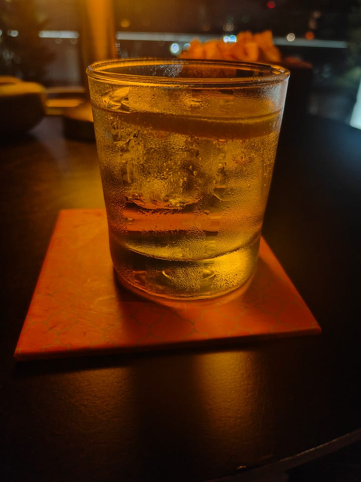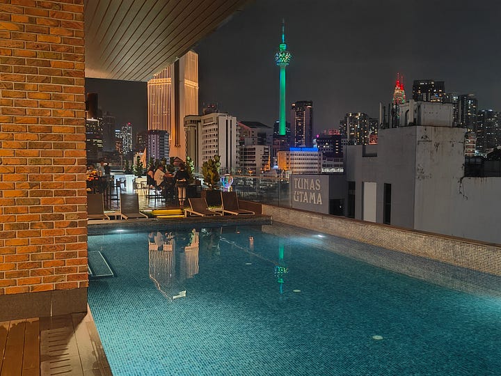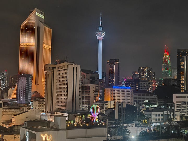 Since it’s Christmas Eve and the Four Points by Sheraton has a bar, I go there for a nightcap - a Four Pillars gin from Australia. It’s only on the seventh floor. but it’s a nice space and the staff are very keen to look after me. Looking at Merdeka118, I see it’s weeping: I don’t know what’s upset it.