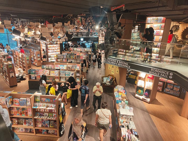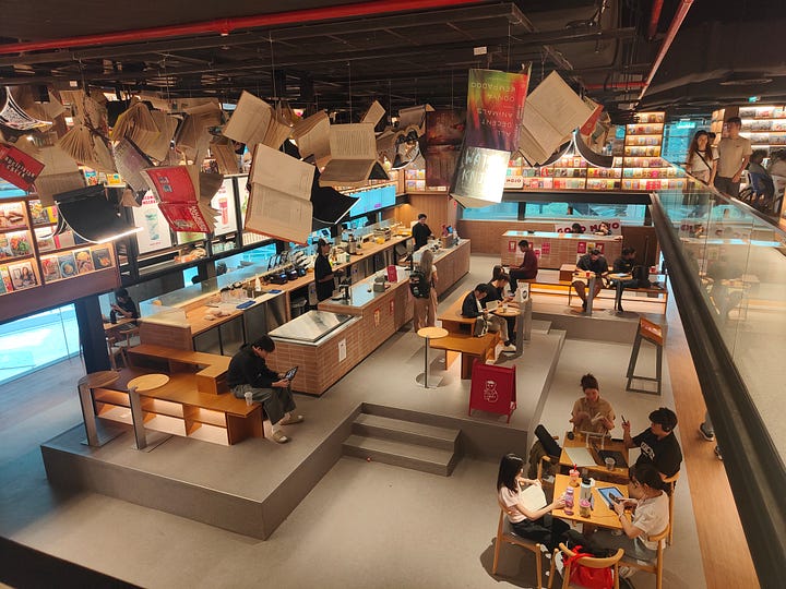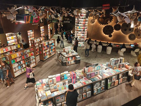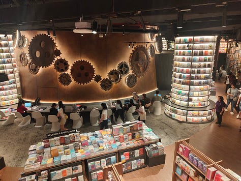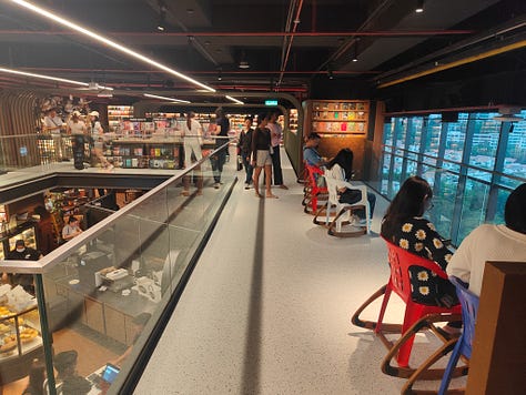 The original aim for the space was to use it as a library for Sunway University, part of which is in the mall building. That plan changed - either for financial reasons or the view that physical books don’t matter - so that now students are expected to find a space in the bookshop to work (it’s still called The Library). I do see quite a few work areas but they are fully occupied. At least it’s open 24 hours a day.