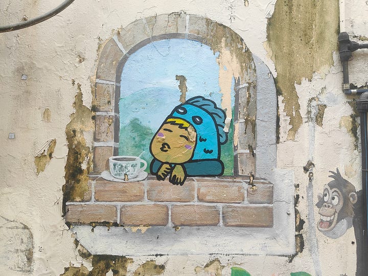 I’ve had two coffees, that doesn’t stop me going in to the place I’m looking for when I find it, Kluang Days. When I was here two years ago, the owner sat with me and very enthusiastically told me about his plans for upstairs - an art space and bookshop - then took me up to show me. I get the feeling that didn’t work out, there’s no sign to indicate anything happens upstairs.