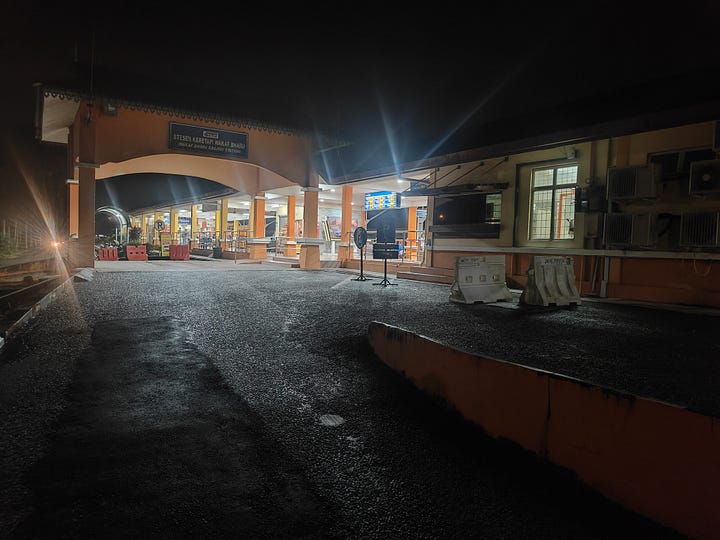 One disadvantage of doing the southbound overnight is that, by the time it’s daylight, all the best bits are behind us. Going north last time, it was dawn as we reached Gua Musang. The bed is pretty comfortable - just a thin mattress over the folded down seats - and I sleep pretty well. The train arrives in Kluang right on 10 in the morning.