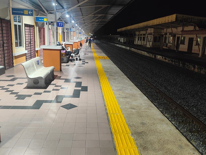 This is the Wakaf Bharu Railway Station - I get there with rather more than an hour to spare: at 8:47 my train pulls in - it started at the tiny coastal village of Tumpat, 15 minutes away and I could, if I wanted, have it take me all the way to Johor Bharu, down the so-called Jungle Line. There are day time trains running the line, but they only do short parts - it would be two trains to Gemas then an overnight there: done that. I could, of course, have booked a seat on the overnight train, but the cheap ones are not very comfortable and the expensive ones are, weirdly, twice the price of a bed. The beds are always sold out but somehow, I’ve scored one at the last minute. 51 ringgit for bed and transport.