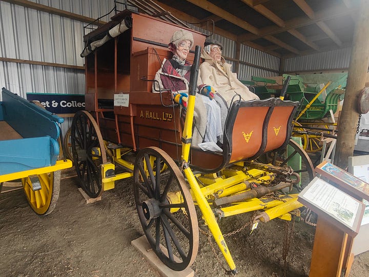 The thing I liked about the small collection of coaches is that they are real coaches used in the area, with an account of how they were used - I feel a bit of a connection to history in the time I spend with them. Hall’s coaches went over Arhtur’s Pass with passengers and mail - this one was the last one to make the run, before the service was made redundant by the opening of the Otira Tunnel in 1923. Three years earlier, Mr Hall had conveyed Edward, the Prince of Wales (later, the brief King Edward VIII) and his retinue in 14 coaches - the green one was part of that voyage, but only carried his luggage, not the Royal person.