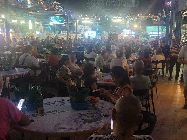 It’s when I go back to Old Winston for dinner (it really is close to my hotel) that I work it out. When I’m there, the place is crowded and there’s a show on - not quite karaoke, as they seem to have a schedule of singers to come on stage to sing a single song (none in English).