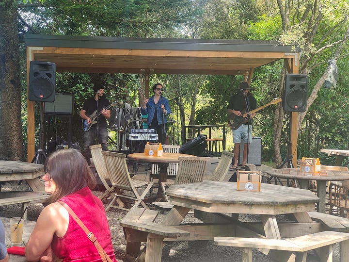 From our house, it’s 28 km to Kerikeri - Puketi Road essentially runs to Waipapa, although it has a change of name half way. We didn’t go very often: we got most groceries in Okaihau and farm supplies in Kaikohe, but my very useless dentist was in Kerikeri and we’d sometimes go for “posh” shopping or to have dinner out. When I was about 8, we came up here from Pouto for a holiday in the tent. It’s a nice town, the nicest in the north I think although, surprisingly, it’s short of nice bars - there’s the Homestead (sports bar and family restaurant) and the Rocksalt (a fairly skodie looking place right in the middle). I, however, have a solution.