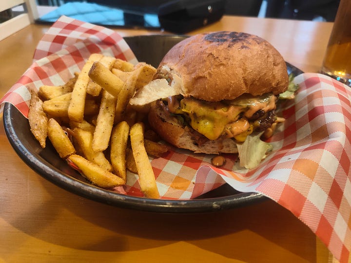 It’s a hot day and I’m thirsty, so the Plough and Feather is of much more interest anyway. They do beers by Kainui Brew - the only brewery I have ever learned about by watching Grand Designs, and Microbewery of the year in 2022. I have a Kainui Gold Helles - it is so good, I then have a 90 Mile IPA. Obviously, with a car, I can’t have more, but I want it.