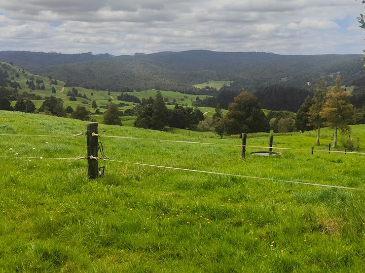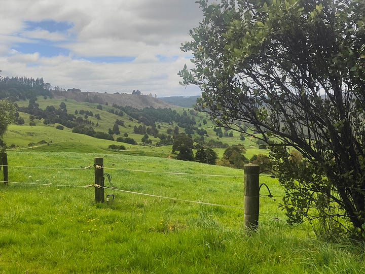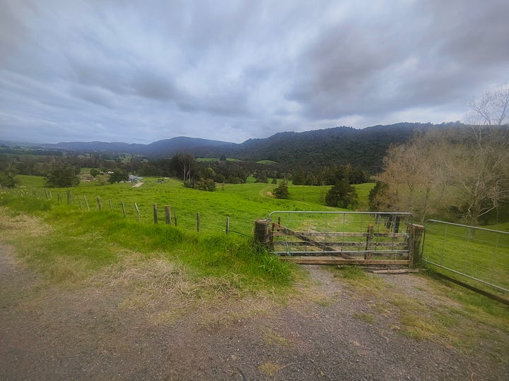 My parents were farmers for most of their lives, starting with a small block just north of Gore, then one about twice the size in Pouto (on the Kaipara Harbour) and ultimately one three times the size of that (1,000 acres) in the Waihou Valley at Okaihau - this photo is looking up the valley from Okaihau. Our farm neighboured on to the Puketi Forest, on Puketi Road - 6 km up SH1 from Okaihau.