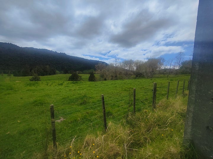 Only the very start of the road - up to our old house - is sealed. In fact, when we moved in, you could hardly call it a road - my Uncle managed to bog a tractor driving up it, and it stayed bogged for months. That made getting to the upper parts of the farm a bit tricky. Thankfully, the road was almost entirely rebuilt and it’s fine now. The house is hardly visible from the road these days. It’s surprising the shed is still standing - it nearly died when we lived there, thanks to our truck rolling down the hill into it.