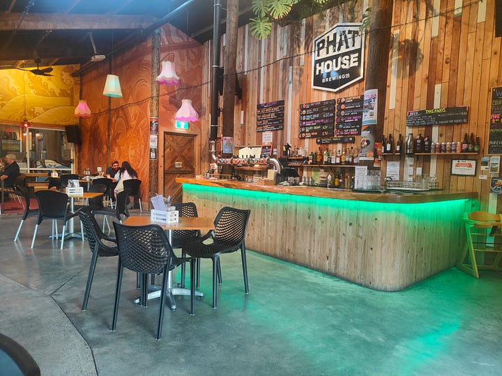 In the hostel, I fall asleep. There’s some sort of street party on at the school as part of the reunion but by the time I’m awake again and ready to move, it’s a bit late to go. Instead, I check out the local brewery, Phat House, for dinner.