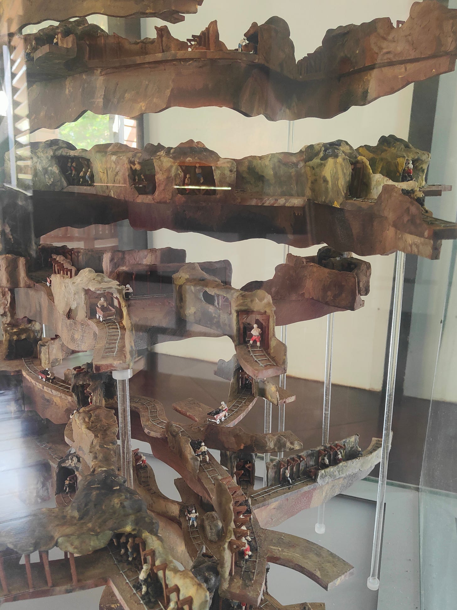 The museum is the former mine manager’s residence (and HQ for the Japanese during the war): it’s the highest building in town. It has a few bits and pieces of mining apparatus and office equipment: only the manager’s bedroom has been left furnished. They have also created a cool model of the mine.
