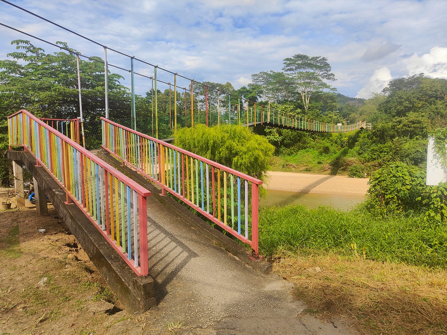 My destination is Sungai Lembing - a former tin mining town that operated for nearly 100 years until the mine closed in 1986. Now, they rely on tourism - there’s a “nearby” waterfall which takes an hour in a 4WD and then another hour’s hike to get to. There’s also a hilltop from which to see the sunrise. Both require a tour to get to and they require tourists to run: on a Wednesday afternoon, there aren’t many visitors. There’s a pretty good Youtube of these places.