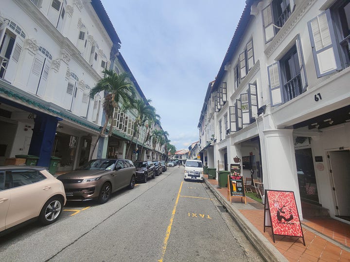 Going outside, I explore the very close Duxton Hill and Duxton Road area - it’s really nice, and I even find some very quiet streets. The place is lined with good looking restaurants, coffee shops (I visit three!) and a couple of English language bookstores. This is Duxton Road.