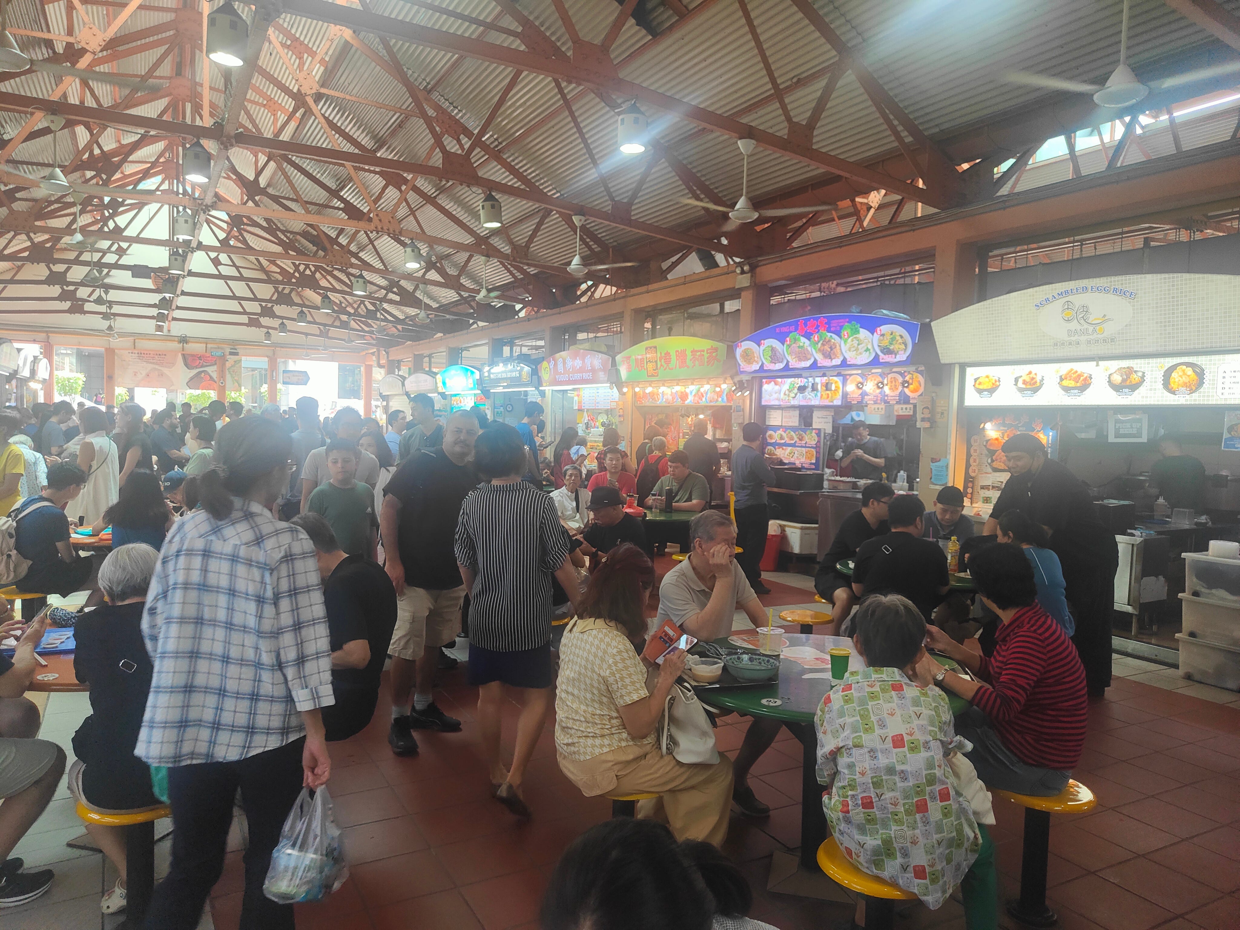 My last day in Singapore, I decide it’s time to hit the big one - Maxwell Food Centre. It’s the one with the famous guests - Anthony Bourdain seems to have sparked off the trend - and recognition from Michelin. It’s actually going to be celebrating its centenary in 2028. From the outside, it doesn’t look like much. There are three rows of stalls with round tables in between: it’s by far the busiest hawker centre I’ve been to.
