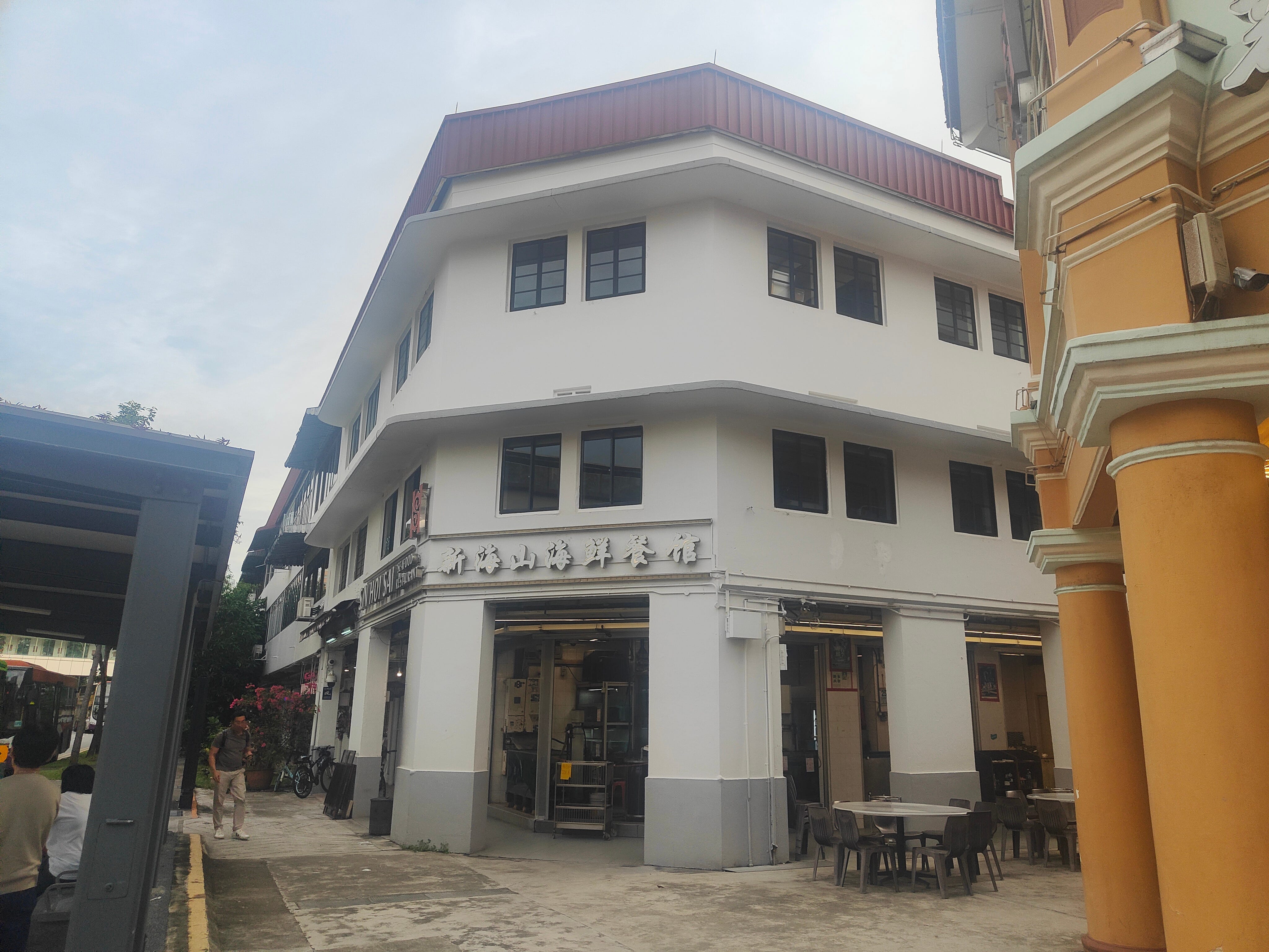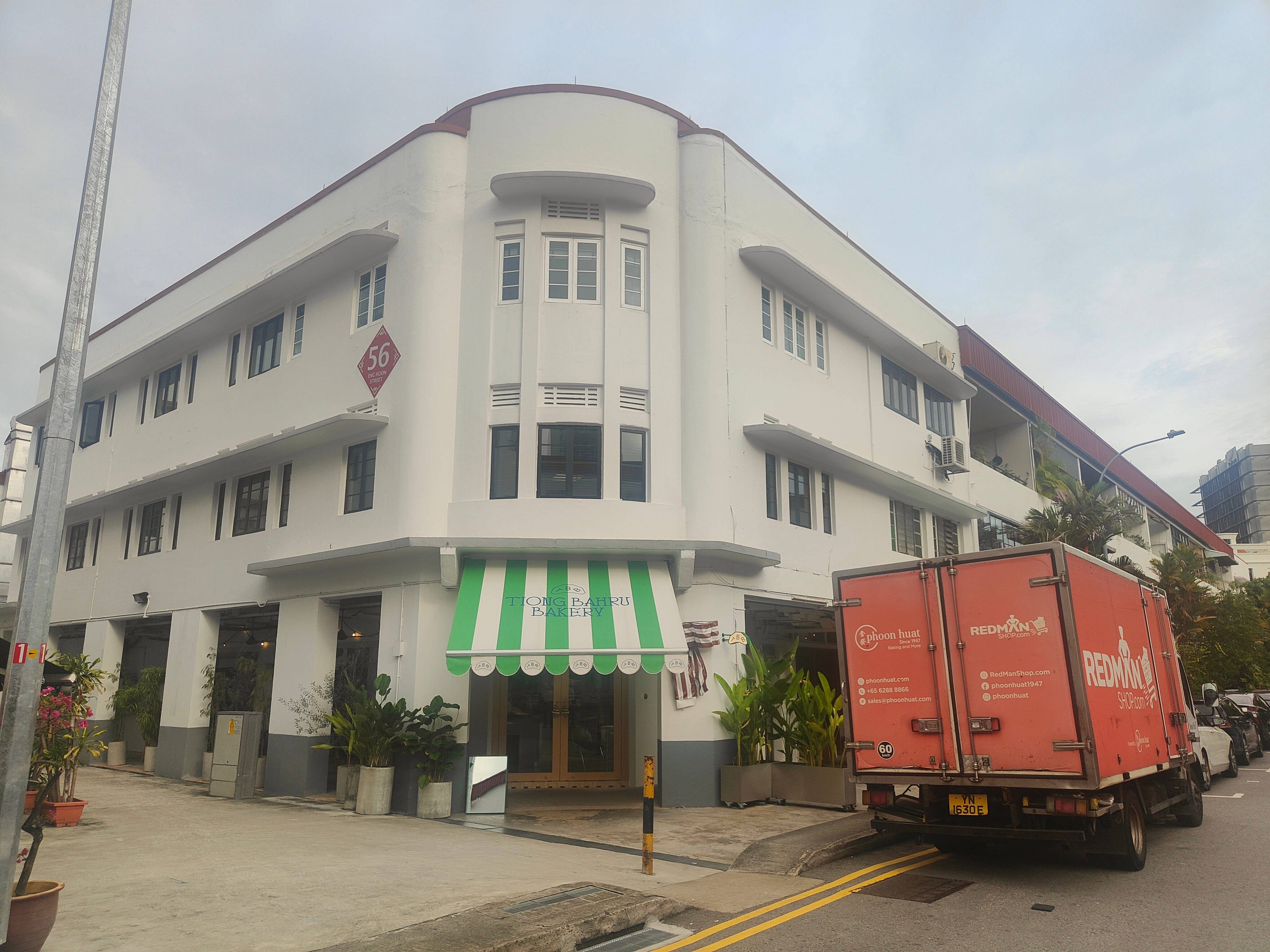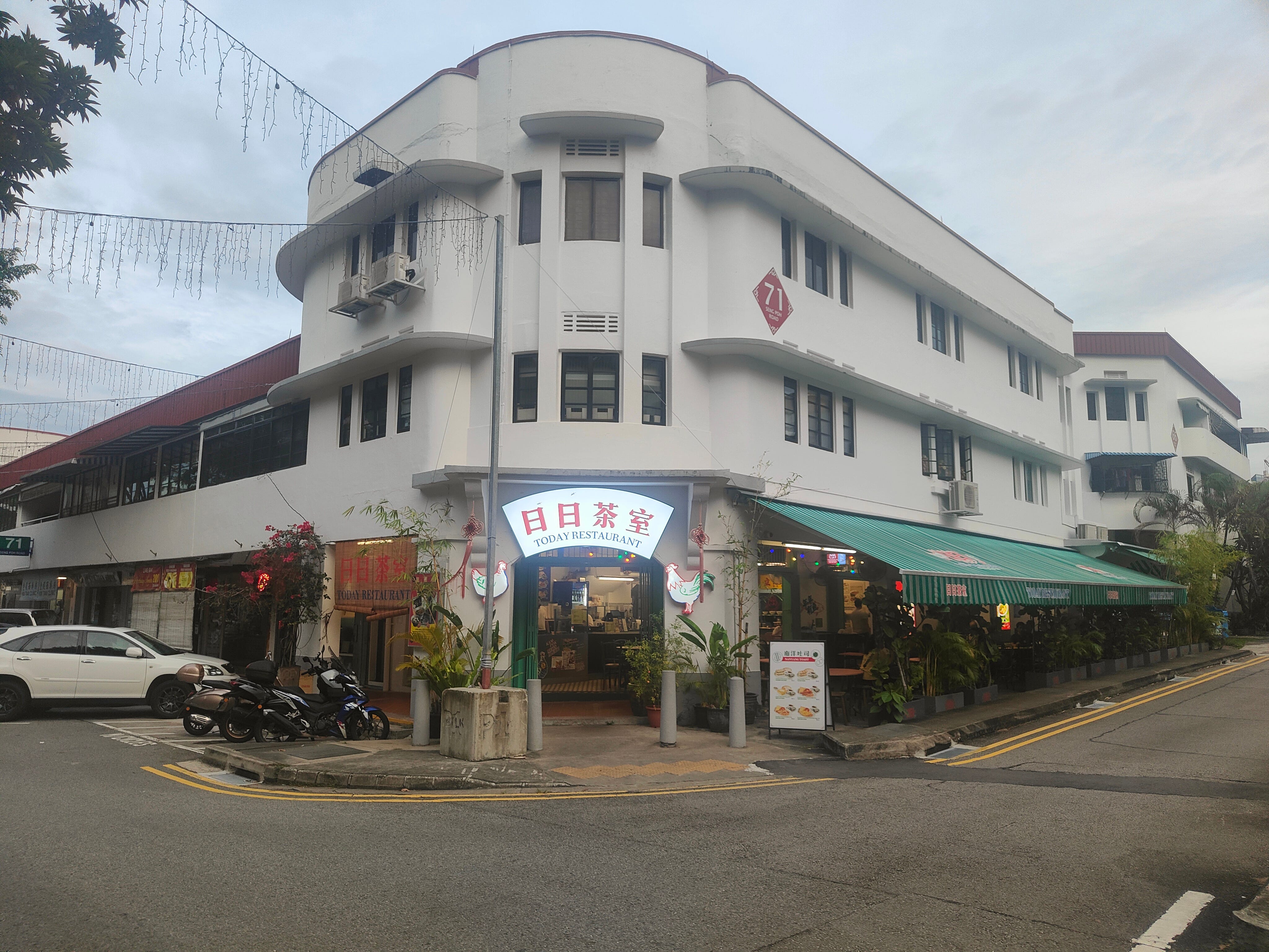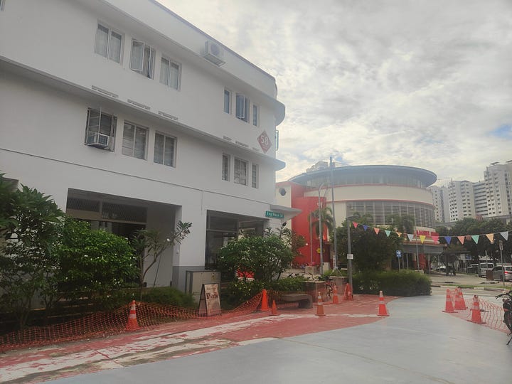 I have been in Singapore several times now, spent six weeks here on sabbatical once, so I’ve seen most of its tourist sites. One comes up that’s a little intriguing because it’s not what most would see as a touristic place of interest (and I don’t spot any here). It’s Singapore’s first social housing development, Tiong Bahru, which got under way in 1936 and has expanded somewhat since then. Essentially, it’s an area of lowrise apartment buildings (many have ground floor retail) built around a big food court. This is the original, now known as Block 55.